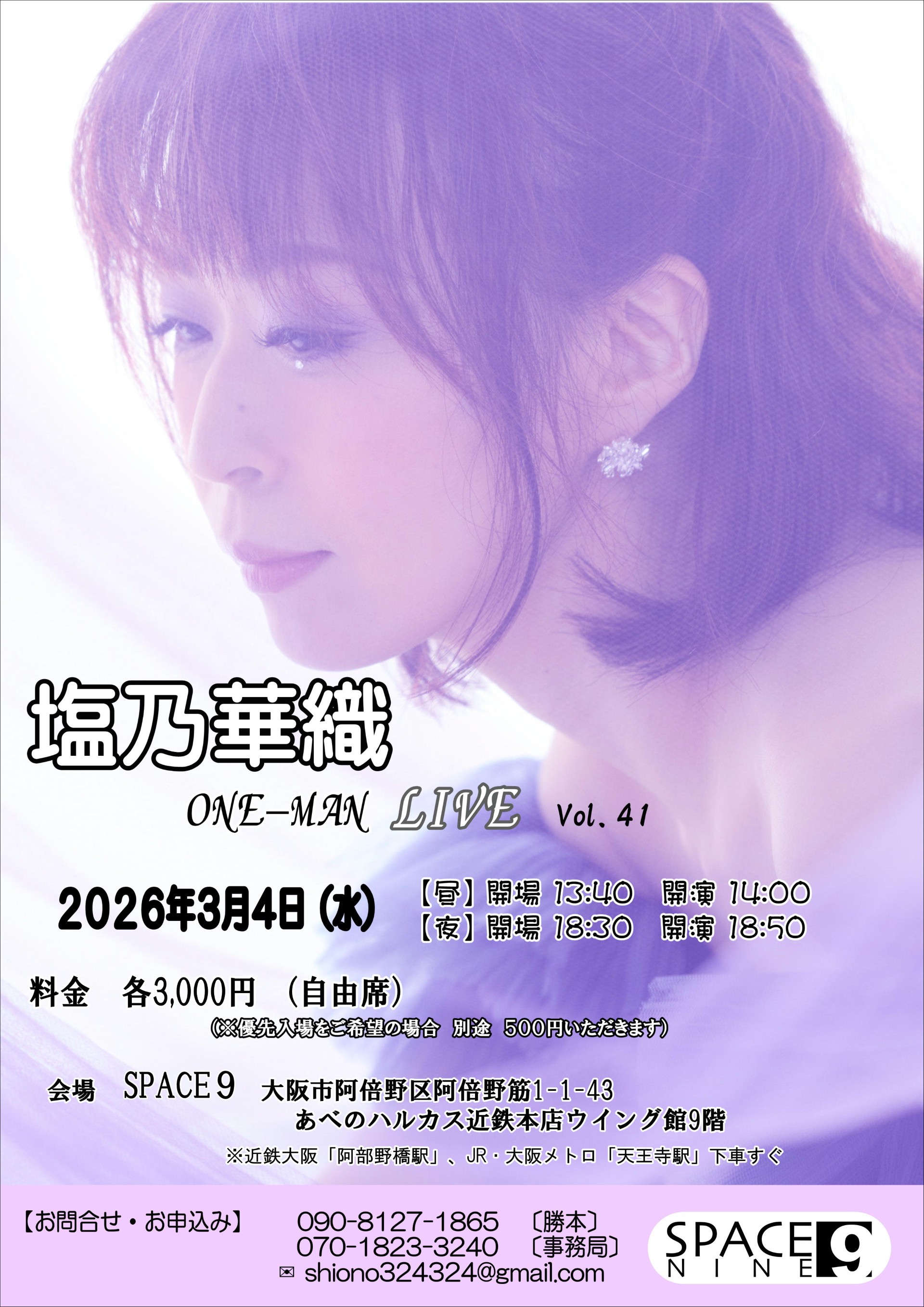 ドラマティック演歌で確固たる地位を築いている塩乃華織、 演歌からバラードまでさまざまな表情をお届けするライブ