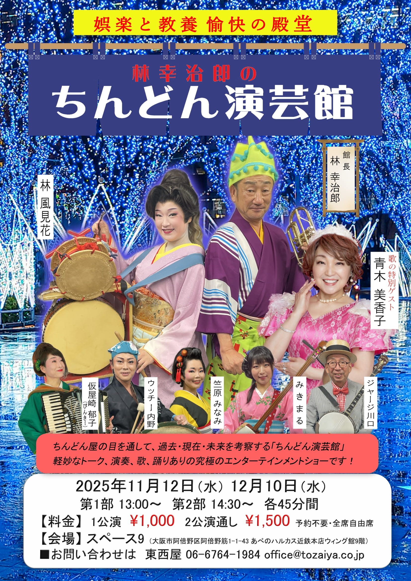 ちんどん屋の目を通して、過去・現在・未来を考察する「ちんどん演芸館」 軽妙なトーク、演奏、歌、踊りありの究極のエンターテインメントショーです!